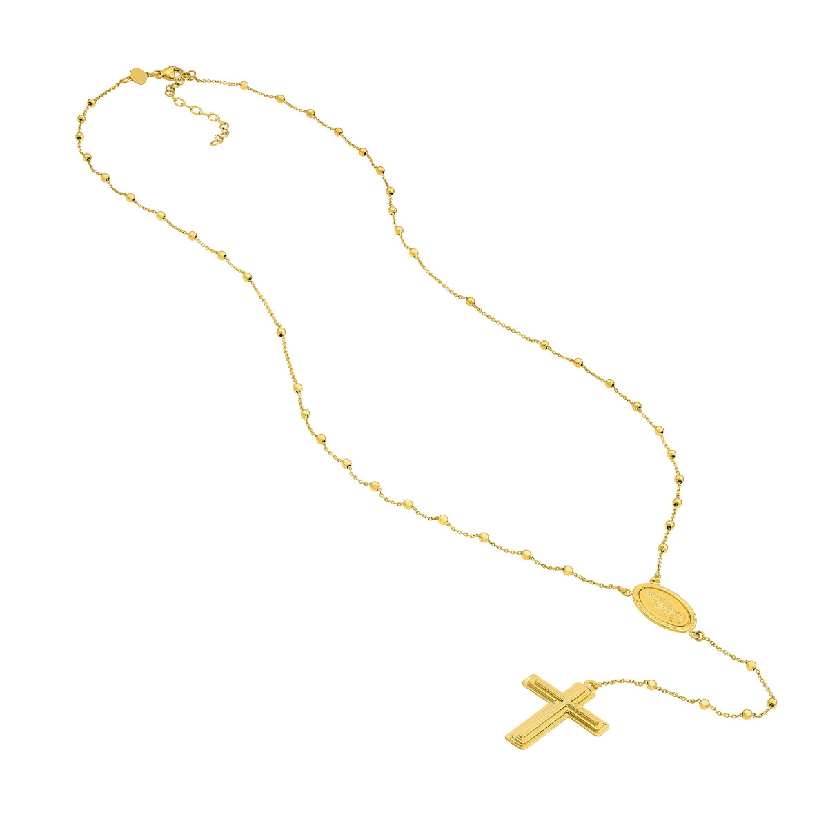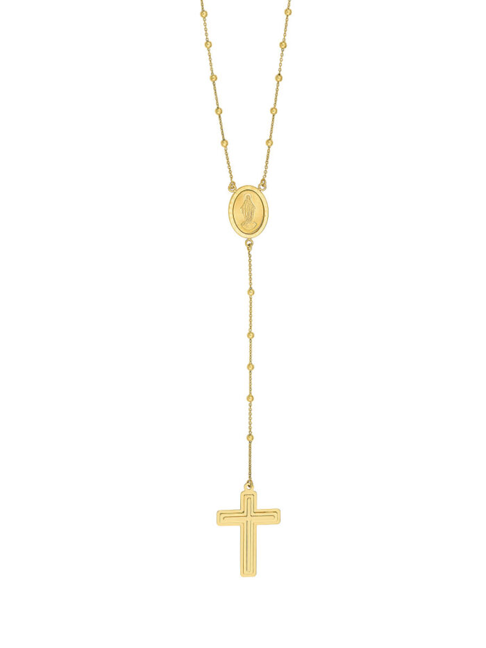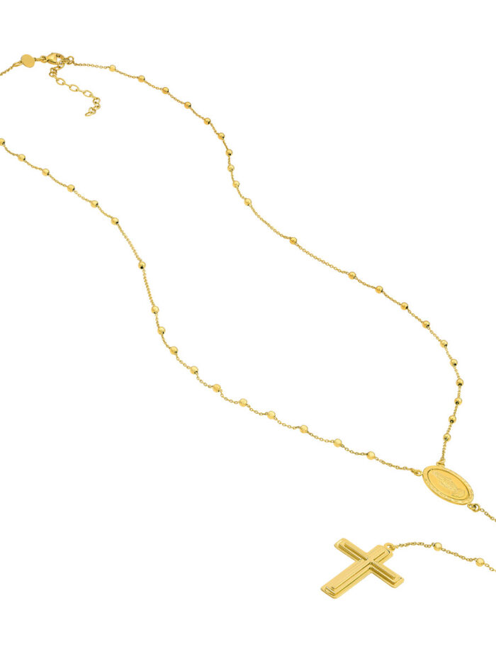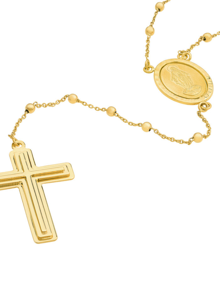 Embrace your faith with this elegant Traditional Rosary Necklace. Made from gleaming 14K yellow gold, this necklace features a timeless cross pendant and a 2-inch extender for a personalized fit. The 23.25-inch length is ideal for layering or wearing alone, adding a subtle yet meaningful touch to your look.