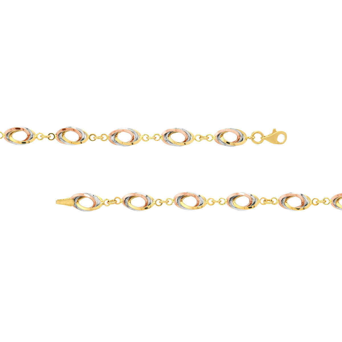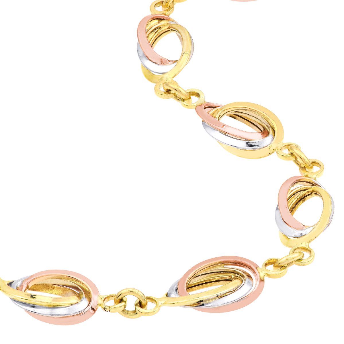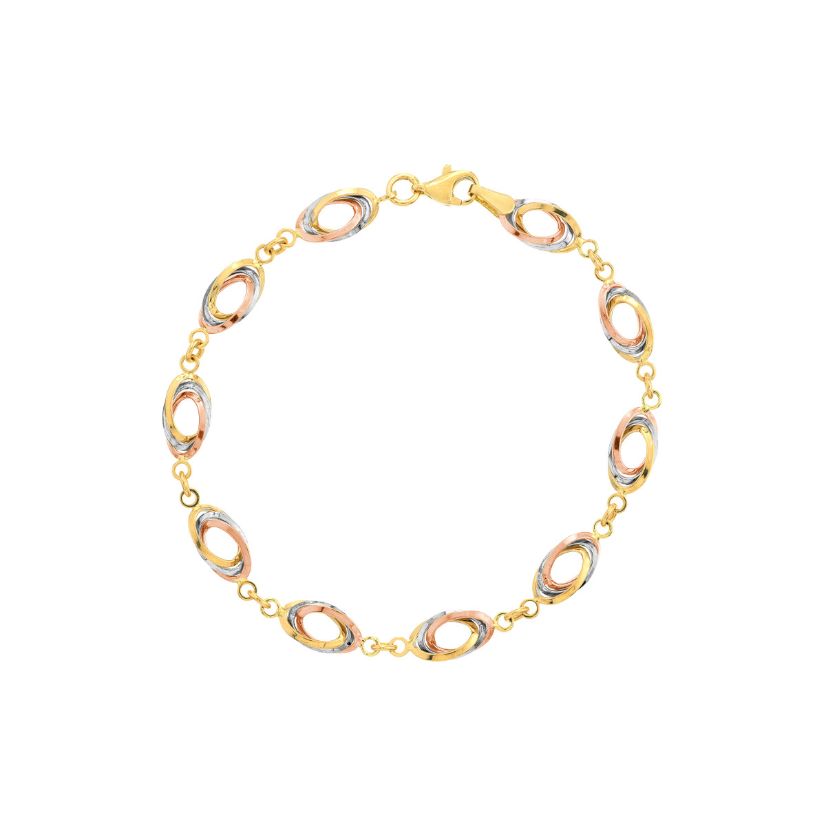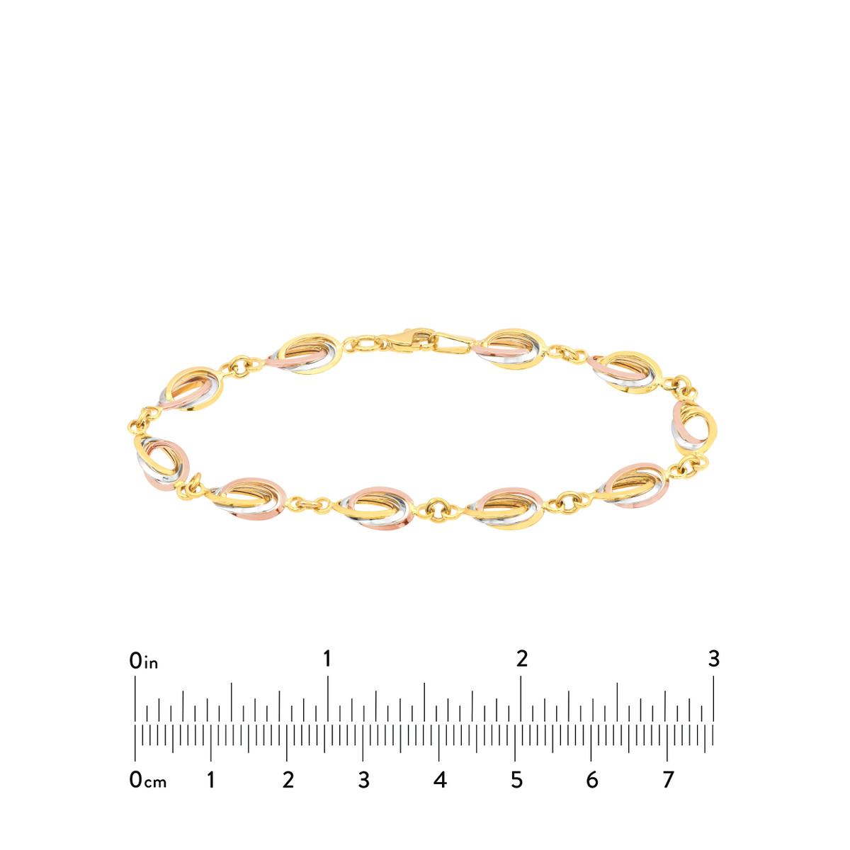 Tri-Color Interwoven Triple Oval Link Bracelet – 14K Three Tone Gold – 7.5 Inch – by Dazyle