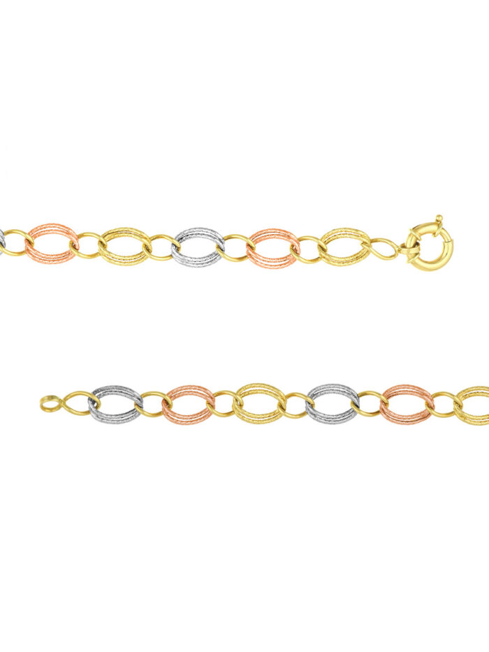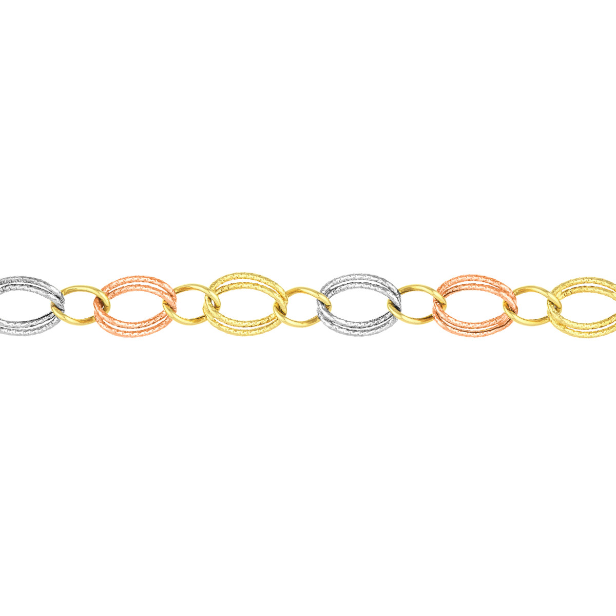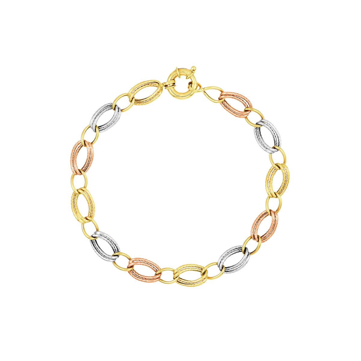 Tri-Colored Textured Link Bracelet 14K Three Tone Gold – 8 Inches – by Dazyle