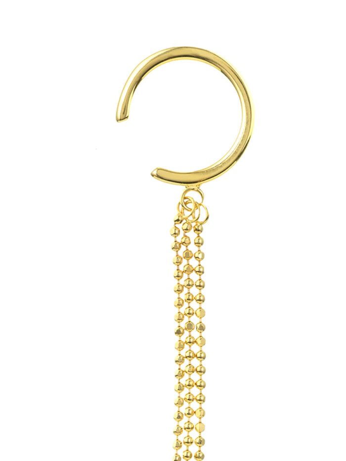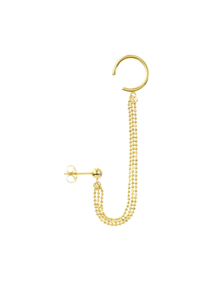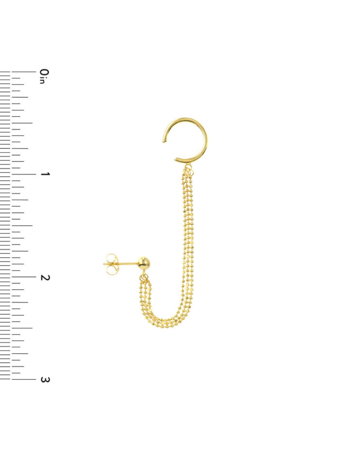 Make a statement with our Triple D/C Bead Chain Drape Earrings featuring stunning ear cuffs. Crafted from gleaming 14K yellow gold, these earrings create a captivating cascade of diamond-cut beads for a luxurious look. The detachable ear cuffs add a touch of versatility, allowing you to customize your style. Securely fastened with post and nut closures, these earrings are both stylish and comfortable.