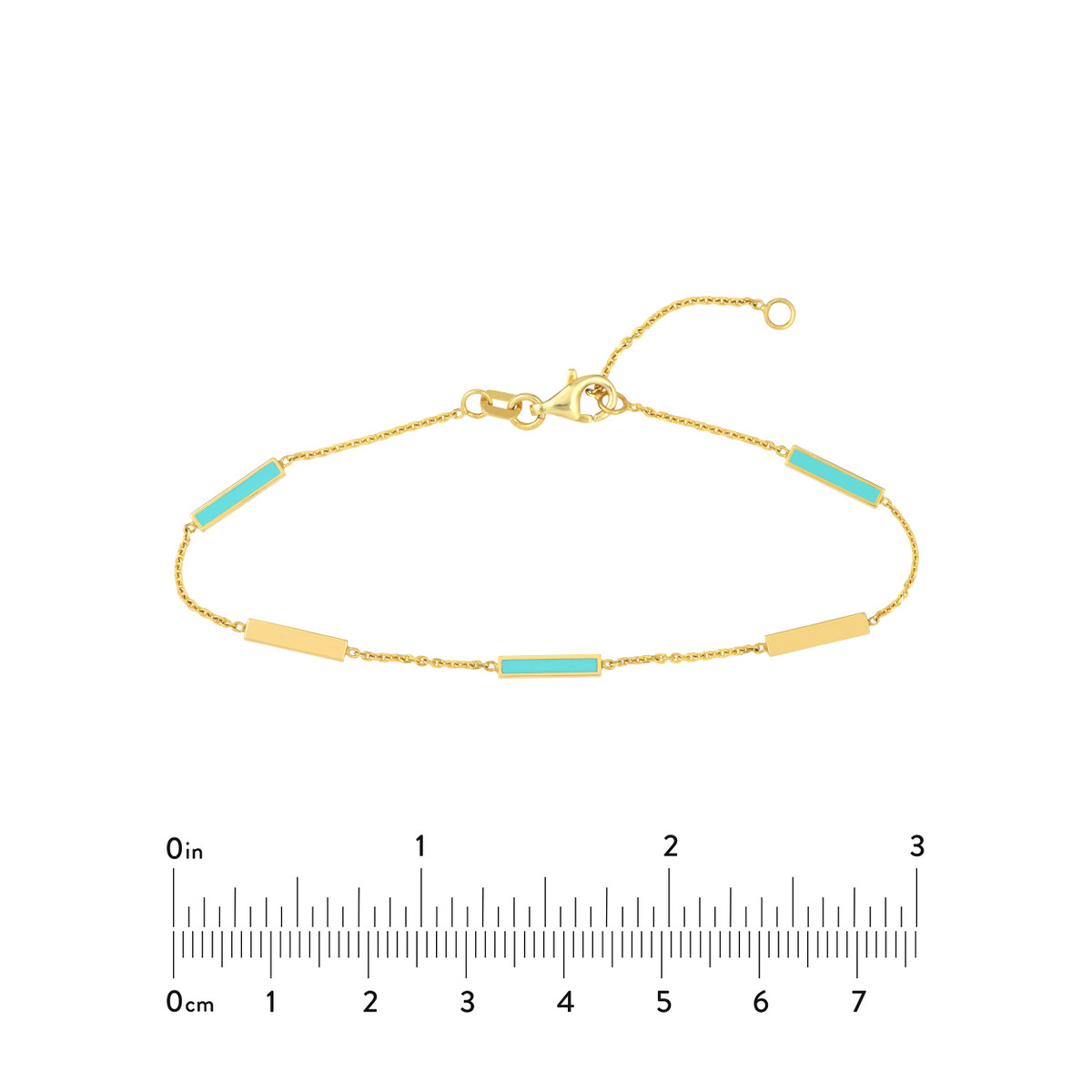 Turquoise Enamel Alternating Bar Station Bracelet – 14K Yellow Gold 7.25″ Adjustable – by Dazyle