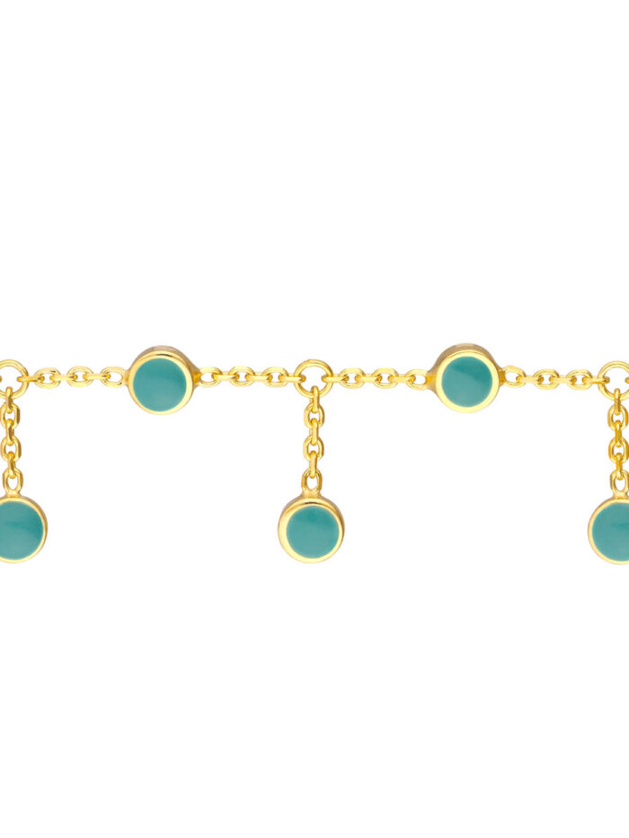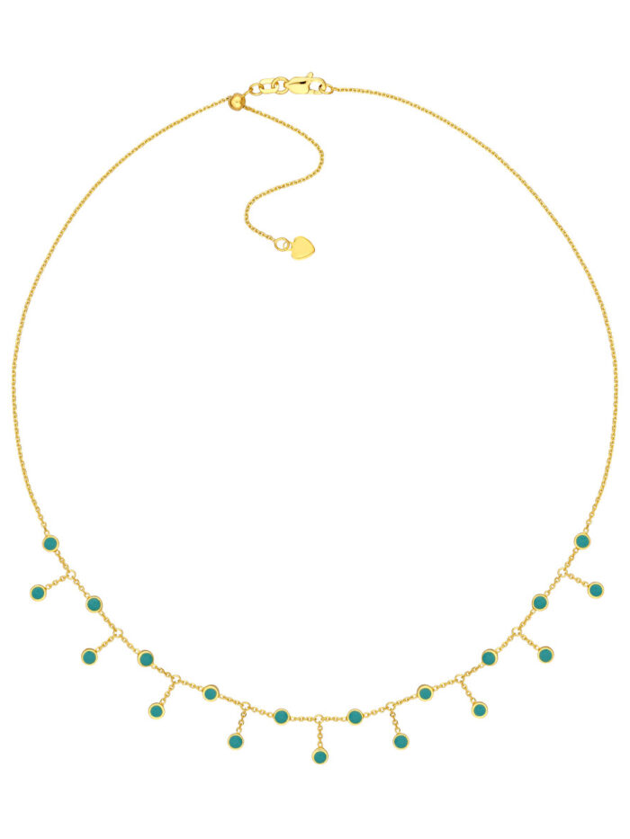 Make a statement with our Turquoise Enamel Station and Dangle Choker. This dazzling piece features a beautiful turquoise enamel bezel station accented by a charming dangle, creating a look that is both chic and eye-catching. The adjustable length allows you to find the perfect fit, making it easy to layer or wear on its own. Crafted from 14K yellow gold, this choker is a timeless piece that will elevate any outfit.