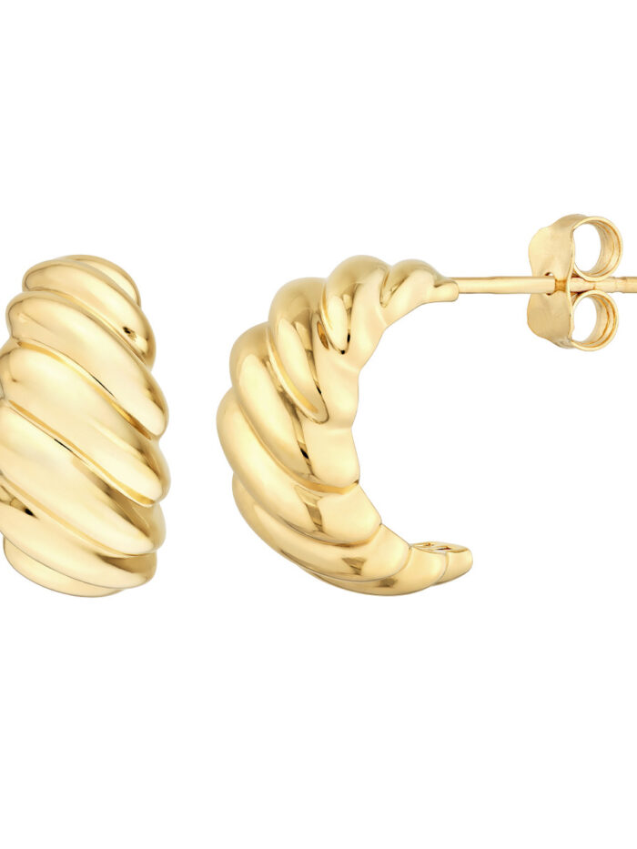 Embrace timeless style with these elegant Twist Dome Hoop Earrings. Crafted from 14K yellow gold, these hoops feature a subtle twist design that adds a touch of modern flair to the classic hoop silhouette. The secure post & nut closure ensures a comfortable and secure fit, making them perfect for everyday wear.