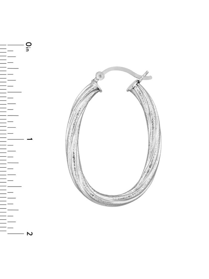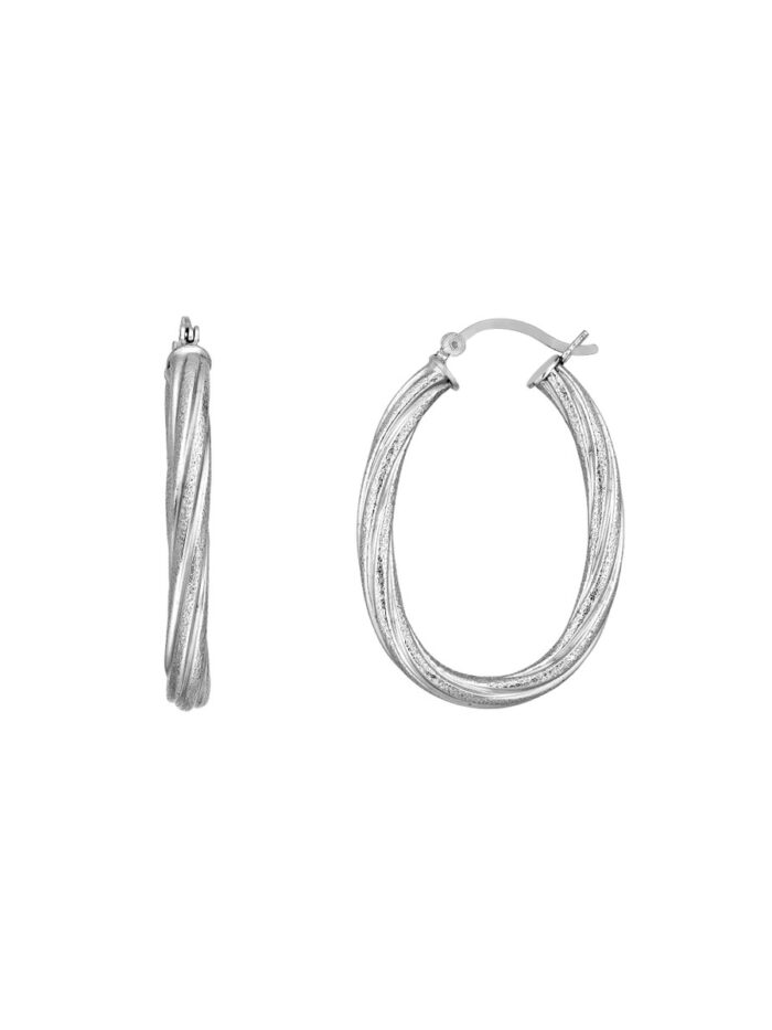 Enhance your everyday look with these elegant twisted oval tube hoop earrings. Crafted from sterling silver and rhodium plated for a lasting shine, these hoops feature a unique twisted design that adds a touch of sophistication. Securely fastened with hinge backs, these earrings are both stylish and comfortable.