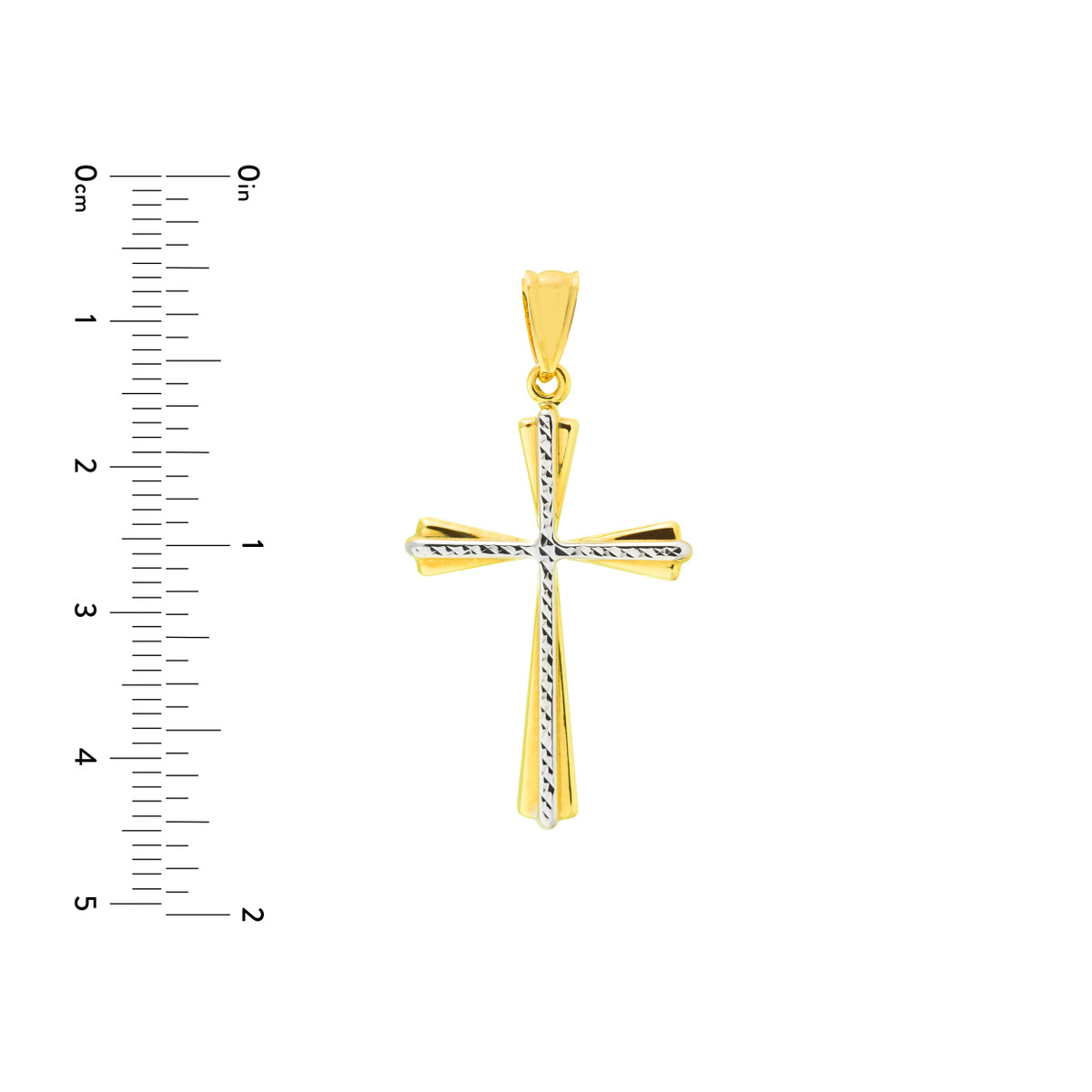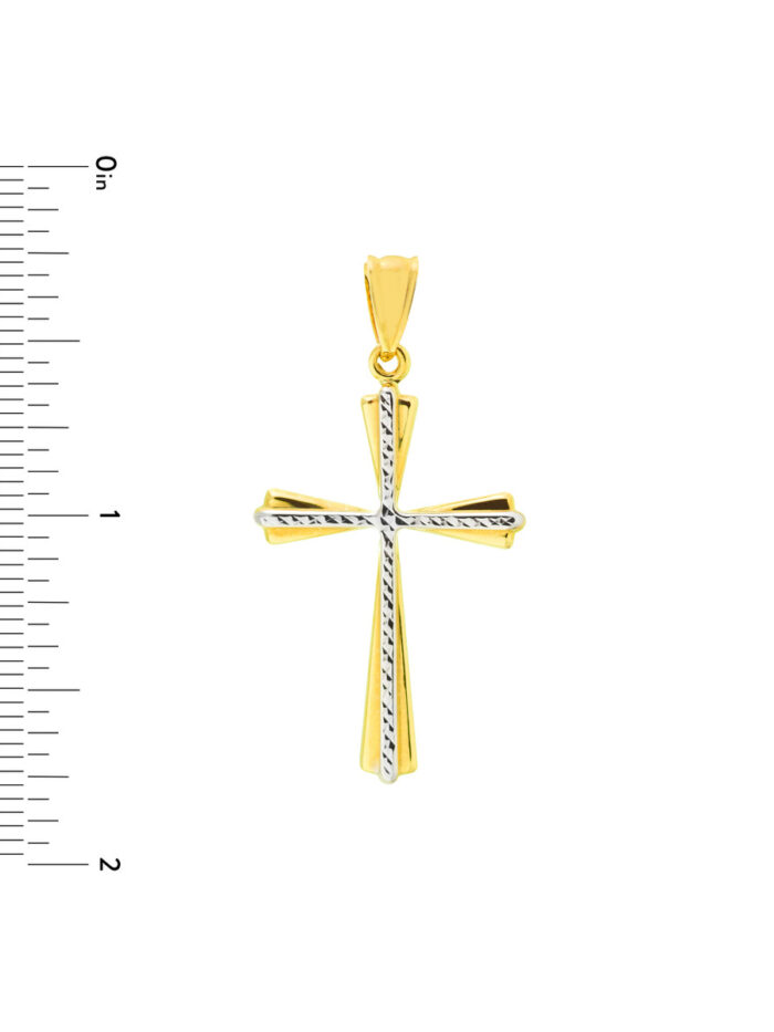 This beautiful two-tone cross pendant is a stunning testament to faith and style. Featuring a 14K yellow gold base with a striking inlaid diamond-cut white gold cross design, it’s a truly unique piece. Crafted from 14K gold for lasting quality, this pendant is a perfect gift to celebrate special occasions or simply to express your devotion.