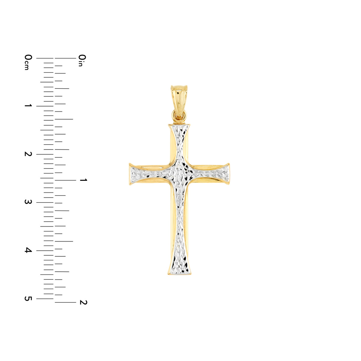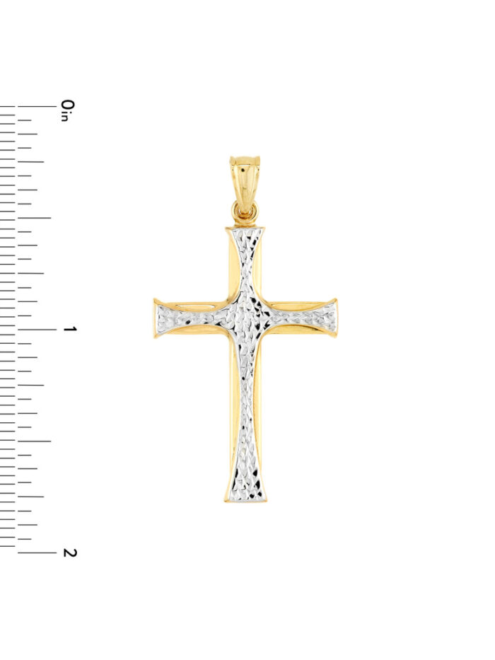 This stunning two-tone cross pendant combines the brilliance of diamond-cut white gold with the elegance of polished yellow gold. A timeless design, it’s perfect for adding a touch of faith and sophistication to any outfit. Crafted from 14K gold, this pendant is both durable and beautiful, making it a treasured gift for any occasion.