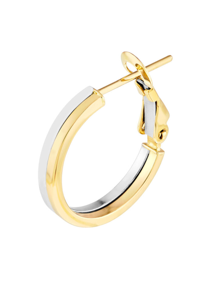 Elevate your ear game with these stunning Two-Tone Omega Back Earrings. These 18mm earrings beautifully blend 14K yellow and white gold, creating a look that’s both modern and classic. The seamless omega back closure ensures a secure and comfortable fit, making them perfect for everyday wear or special occasions.