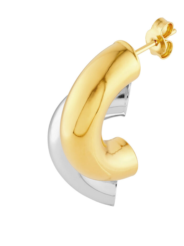 Embrace both elegance and individuality with these Two-Tone Double Half Circle Earrings. Crafted from 14K Yellow & White Gold, this pair features a unique design that seamlessly blends two precious metals. The secure Post & Nut closure ensures a comfortable fit.