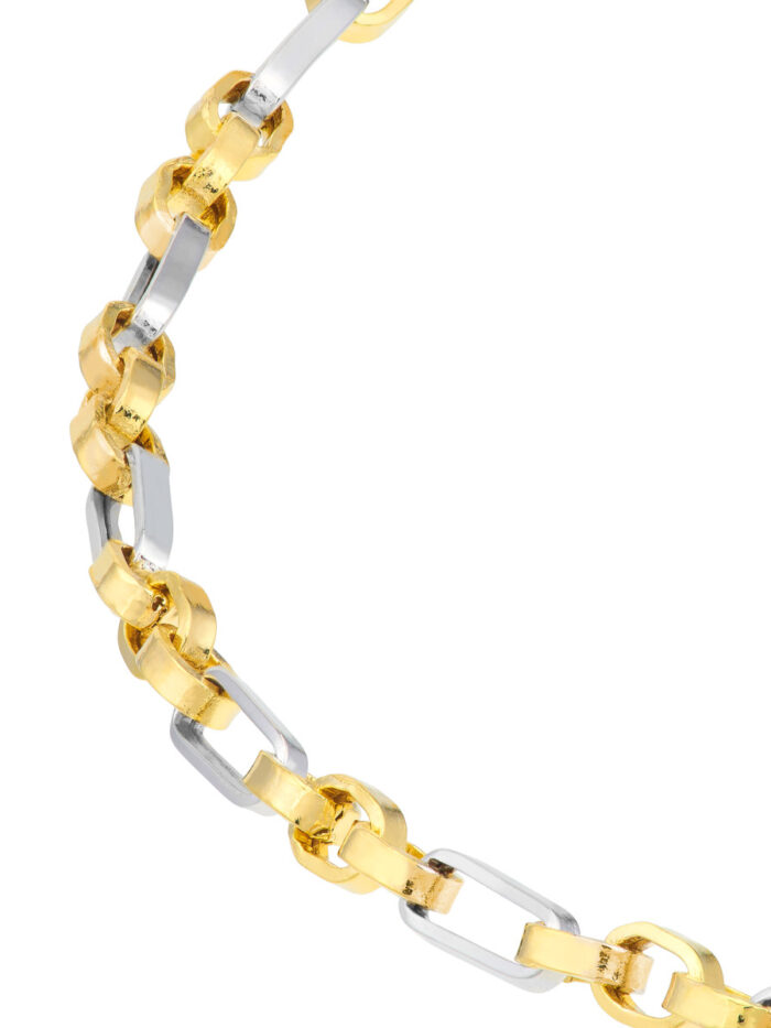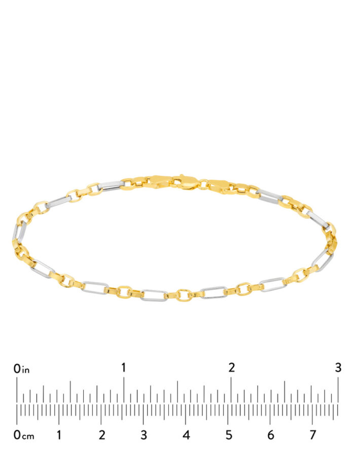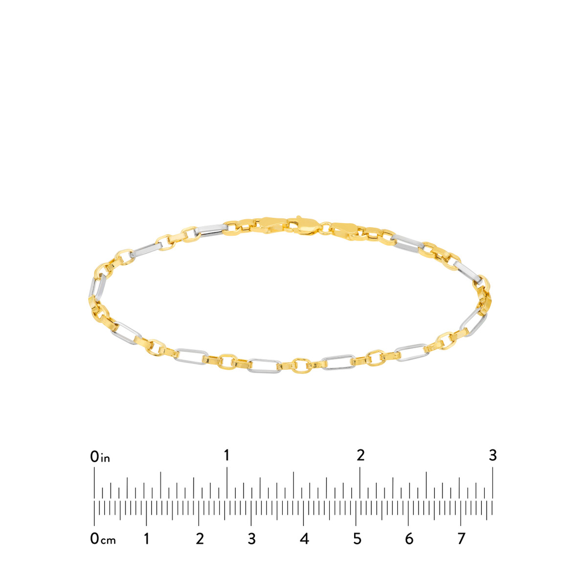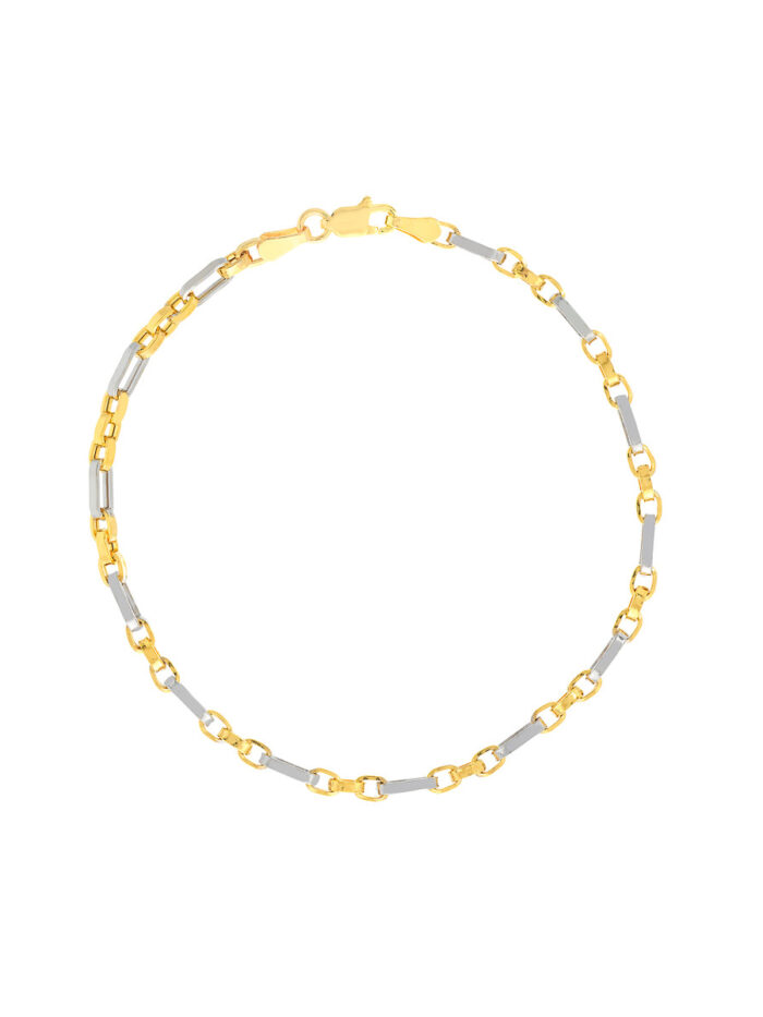 Elevate your everyday style with the iconic Two-Tone Figaro Square Rolo Chain Bracelet. This classic bracelet features alternating square and round links in 14K yellow and white gold, creating a timeless and sophisticated look. Crafted with a secure lobster closure, this bracelet measures 7.25 inches in length, making it the perfect addition to any jewelry collection.