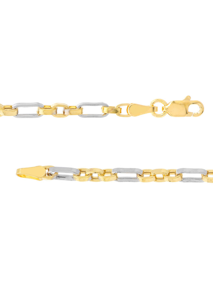 Elevate your everyday style with the iconic Two-Tone Figaro Square Rolo Chain Bracelet. This classic bracelet features alternating square and round links in 14K yellow and white gold, creating a timeless and sophisticated look. Crafted with a secure lobster closure, this bracelet measures 7.25 inches in length, making it the perfect addition to any jewelry collection.
