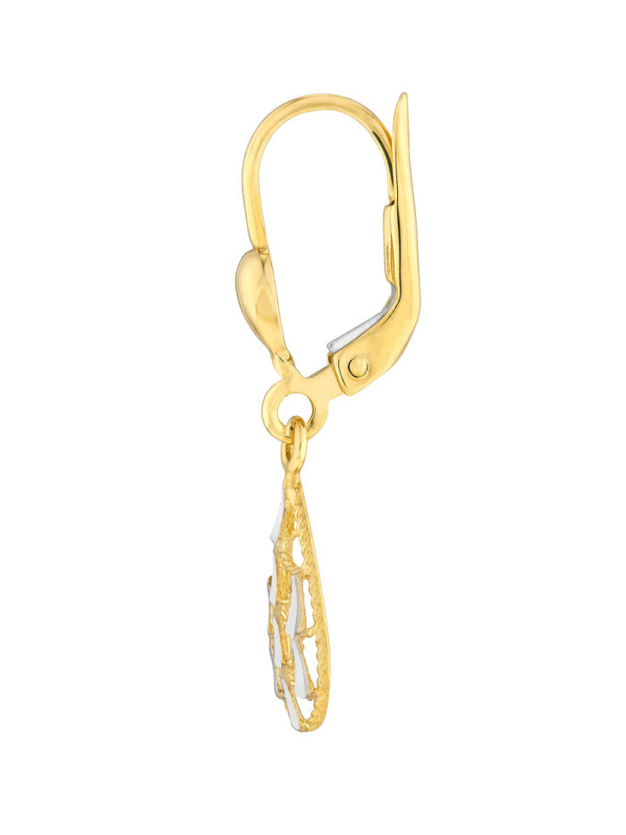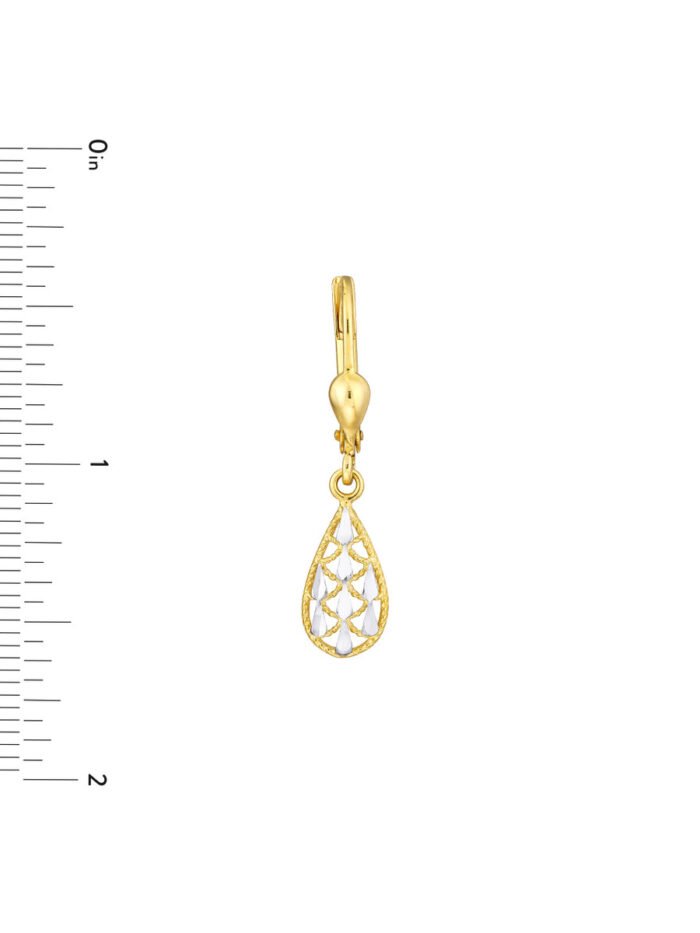 Two-Tone Filigree Teardrop Dangle Earrings – 14K Yellow & White Gold – by Dazyle