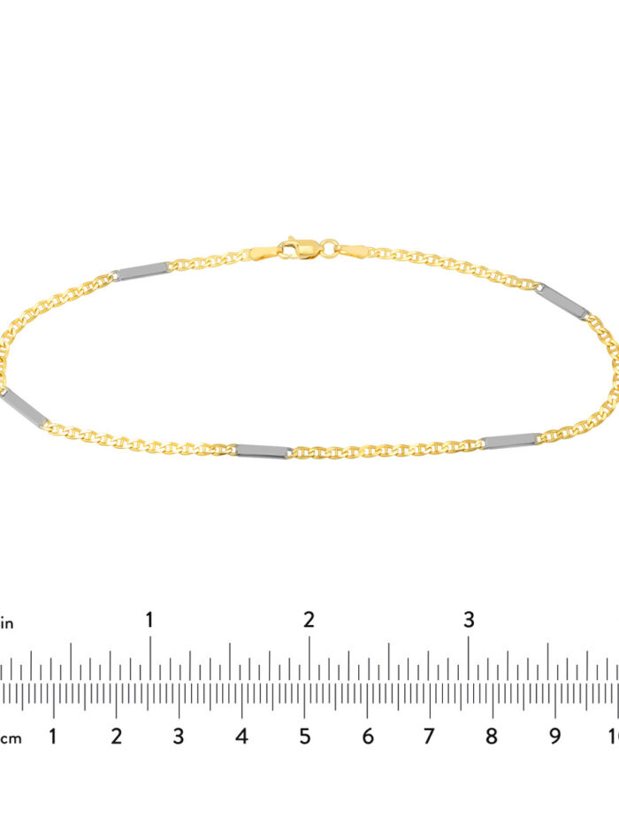 Embrace the allure of the classic mariner chain with this exquisite two-tone anklet. Crafted in lustrous 14K yellow and white gold, this 9.5-inch anklet features a timeless design with added elegance. Securely fastened with a lobster clasp, it’s the perfect accessory to elevate your everyday style.