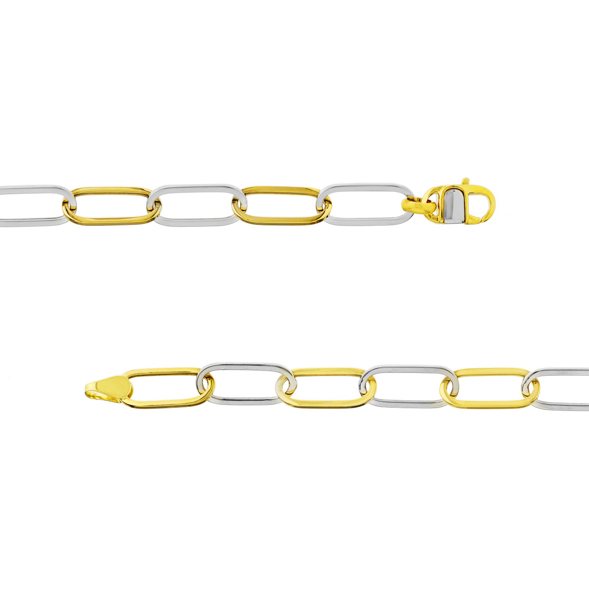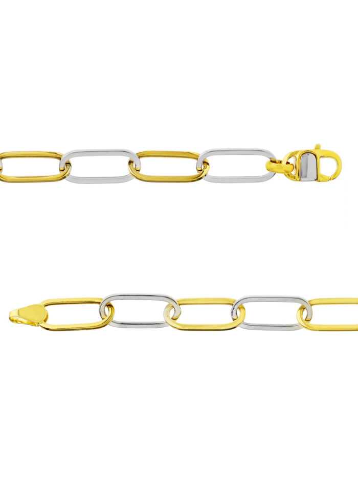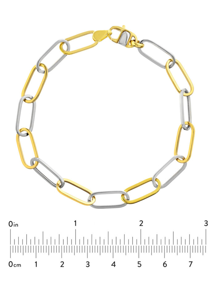 Embrace timeless elegance with this stunning two-tone open oval link bracelet, crafted from lustrous 14K yellow and white gold. The modern oval links catch the light beautifully, while the secure lobster clasp ensures a comfortable and confident fit. This bracelet measures 8.25 inches in length, making it a perfect everyday accessory or a special gift for someone you cherish.