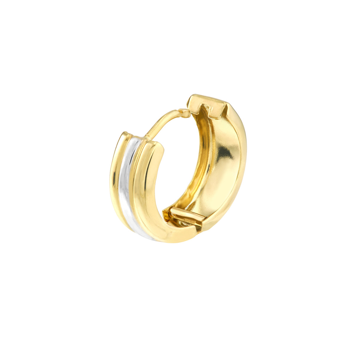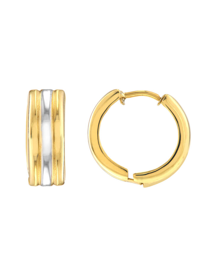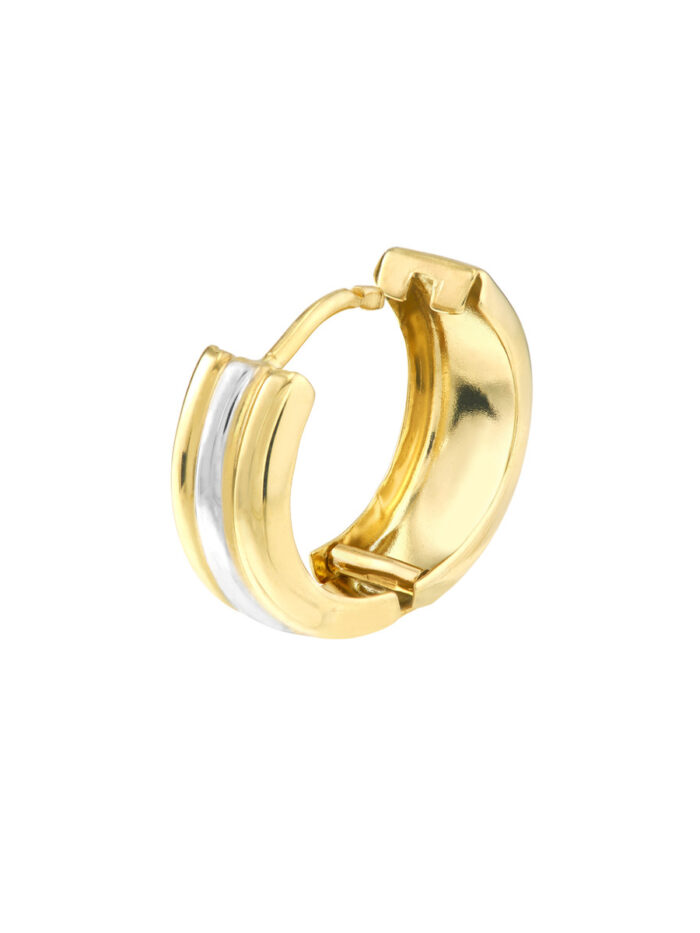 Elevate your style with these captivating Two-Tone Segmented Round Hoop Earrings. Crafted from shimmering 10K yellow and white gold, these earrings feature a unique segmented design that adds a touch of modern sophistication. The hinged closure ensures a secure and comfortable fit.