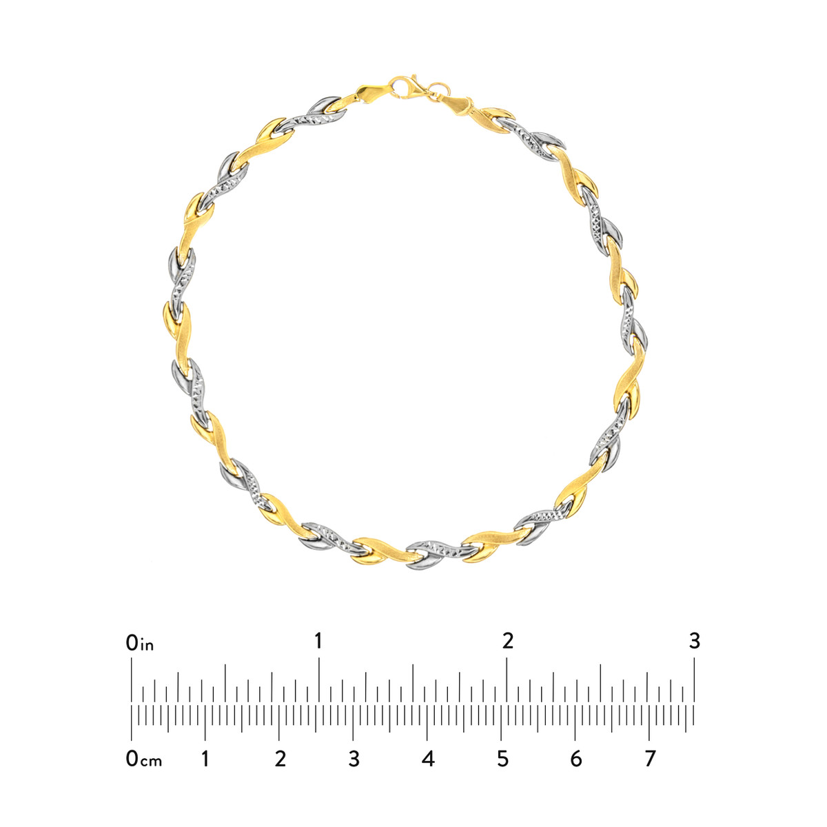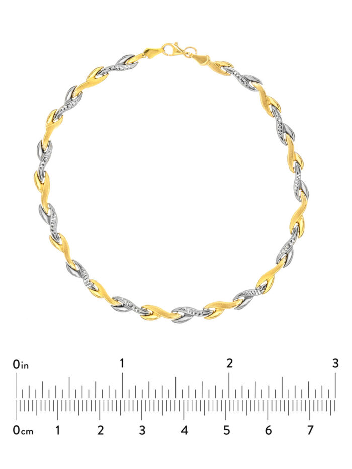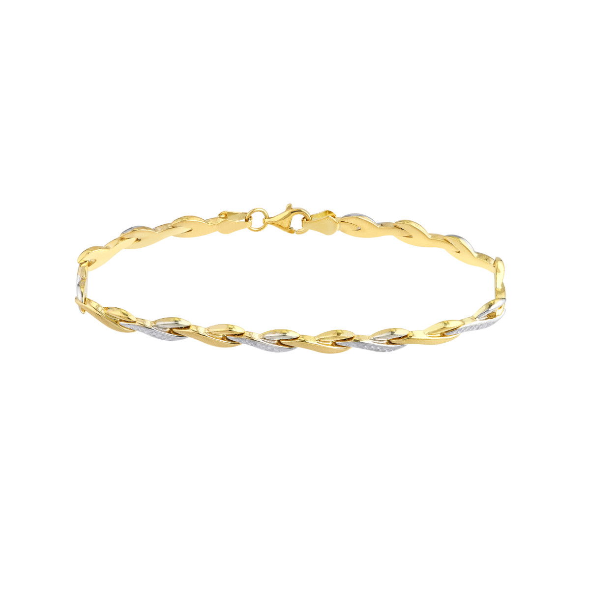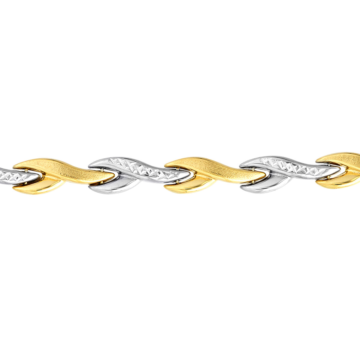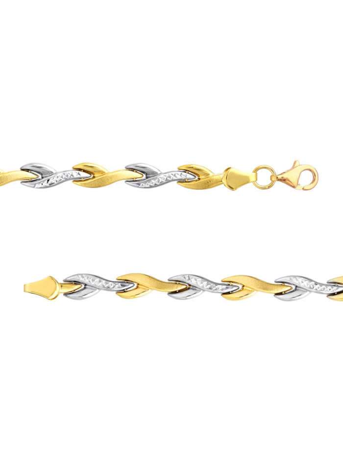 Indulge in the timeless elegance of this Two-Tone Stampato Mermaid Fin Bracelet. Crafted from a blend of 14K yellow and white gold, this bracelet boasts a unique mermaid fin design with a textured stampato finish. The secure lobster clasp ensures a comfortable and confident fit. Measuring 7.25 inches in length, this bracelet is a stunning statement piece that will elevate any outfit.