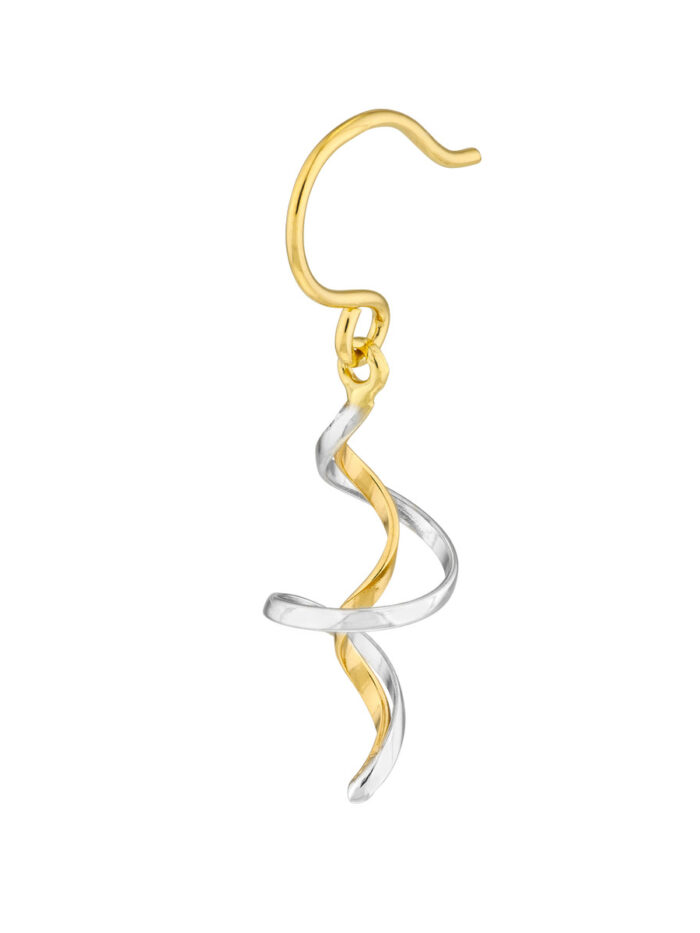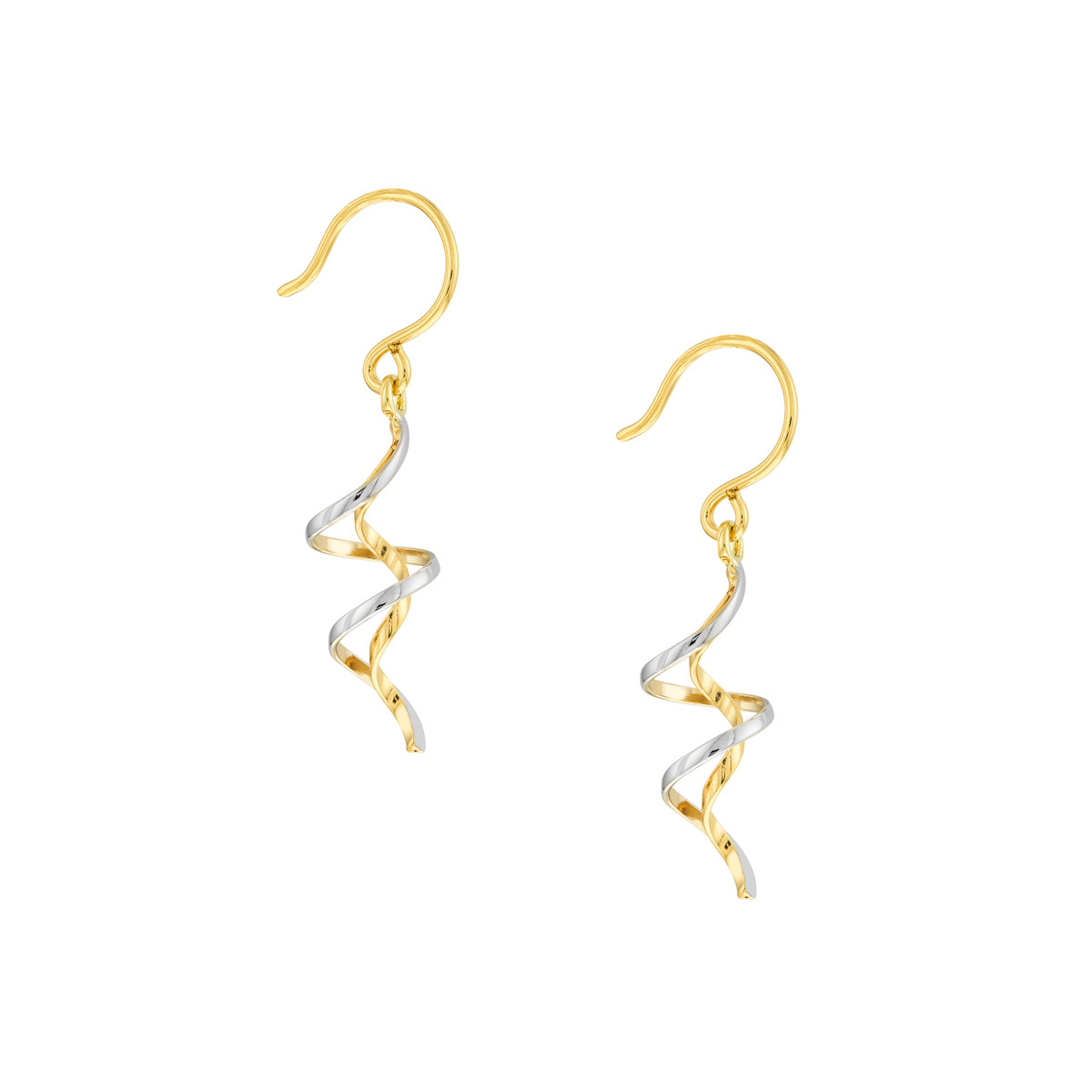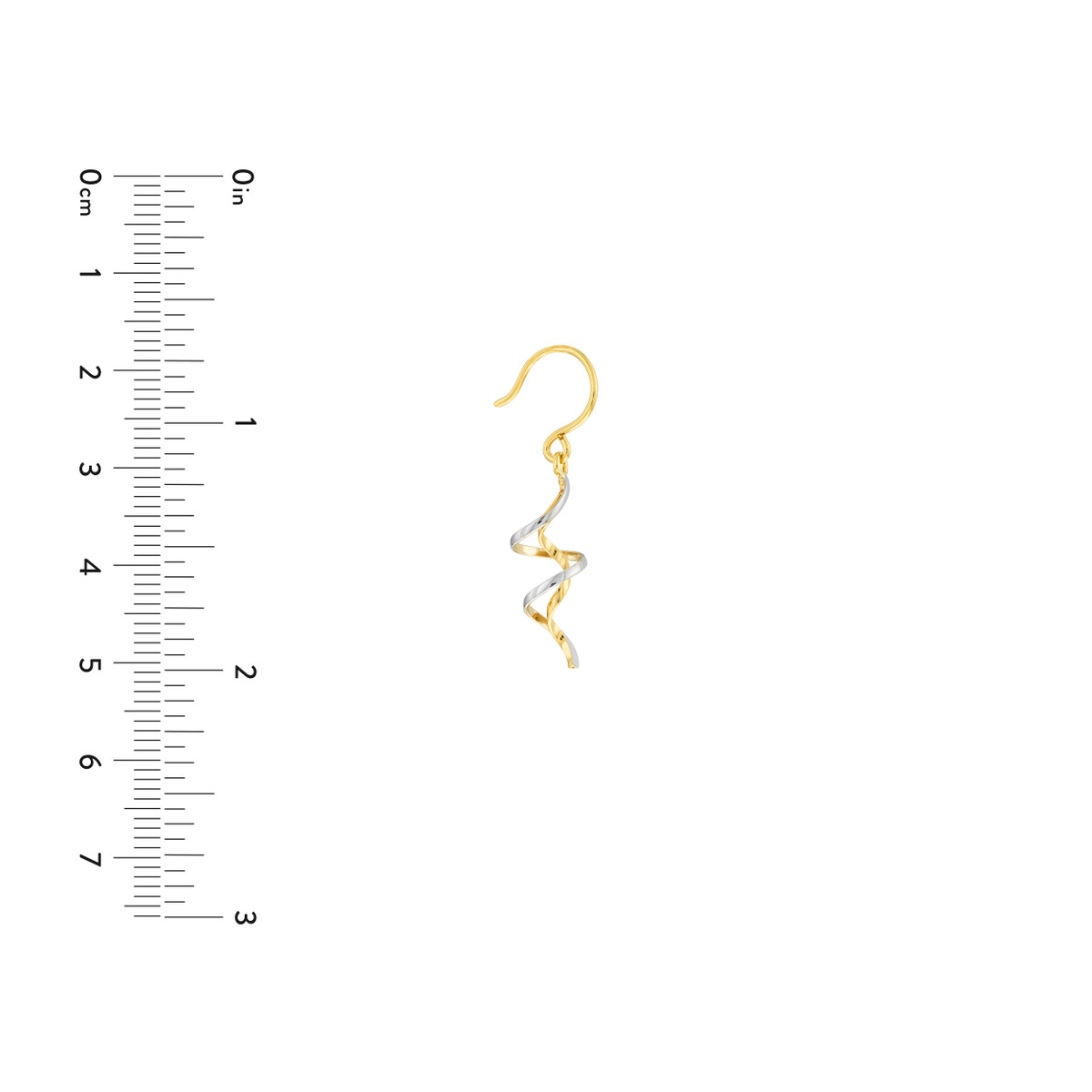Make a bold statement with these eye-catching two-tone twisted wire dangle earrings. Crafted from 14K yellow and white gold, these earrings feature a unique twisted wire design that adds a touch of modern flair. The fish hook closure ensures a secure and comfortable fit. Whether you’re looking to add some edge to your outfit or simply want to express your unique style, these earrings are a great choice.