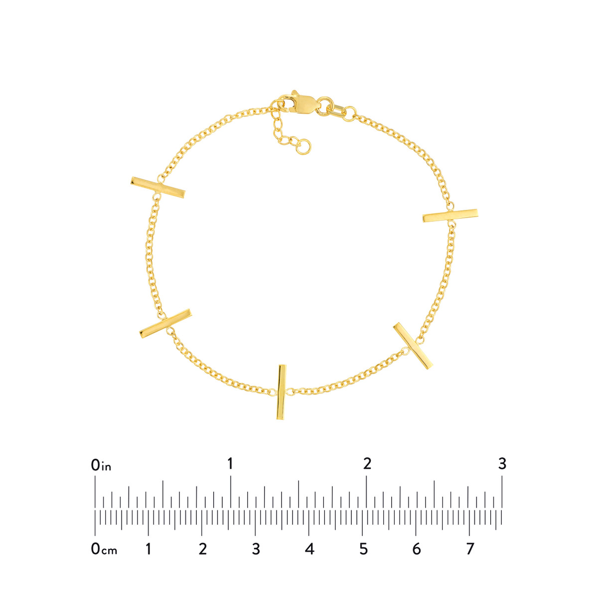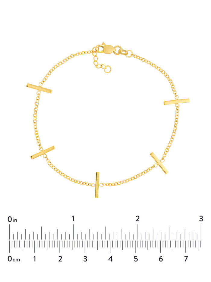 Add a touch of contemporary elegance to your wrist with this stunning upright staple bars bracelet. Crafted in 14K yellow gold, this bracelet features a sleek and modern design. The adjustable length allows for a personalized fit, while the secure lobster closure ensures a comfortable and secure wear.