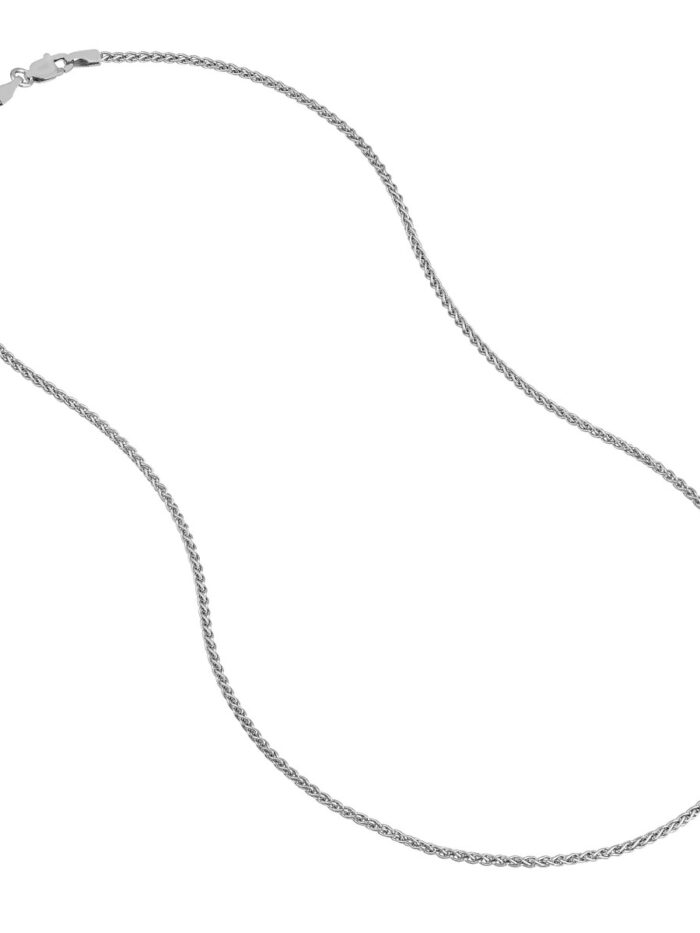Add a touch of understated elegance to your look with this beautiful Wheat Chain, crafted from genuine sterling silver. The classic wheat pattern adds a subtle yet sophisticated detail, making it perfect for layering or wearing on its own. Its 1.65mm width strikes a balance between delicate and noticeable, while the secure lobster closure ensures comfortable wear.