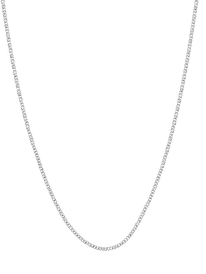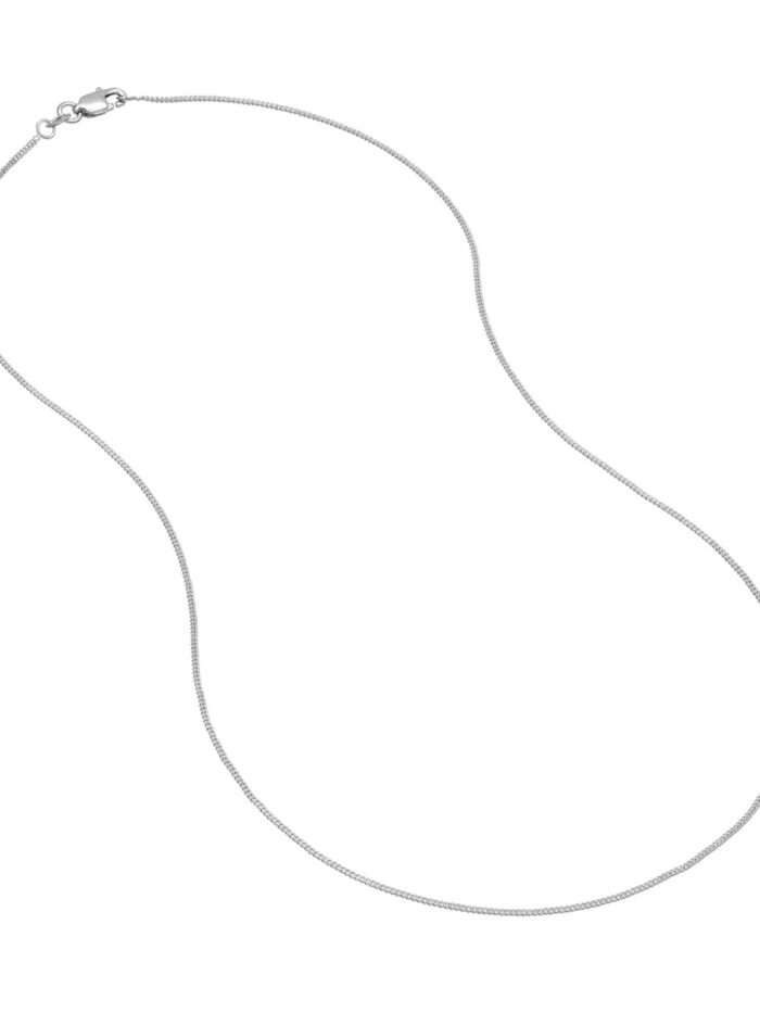 Make a modern statement with this sophisticated 14K white gold curb chain. The 1.04mm thickness adds a touch of elegance, while the secure lobster lock closure ensures peace of mind. At 16 inches in length, this chain is perfect for layering or wearing on its own. Its minimalist design complements a variety of looks, from casual to dressed up.