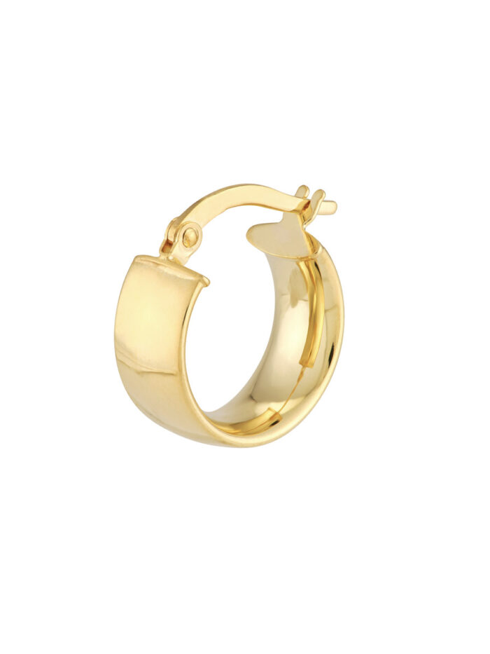 Add a touch of timeless elegance to your look with these stunning wide hoop earrings. Crafted from lustrous 14K yellow gold, these 10mm hoops boast a polished finish that catches the light beautifully. Their classic hinge closure ensures secure and comfortable wear, making them perfect for both everyday style and special occasions.