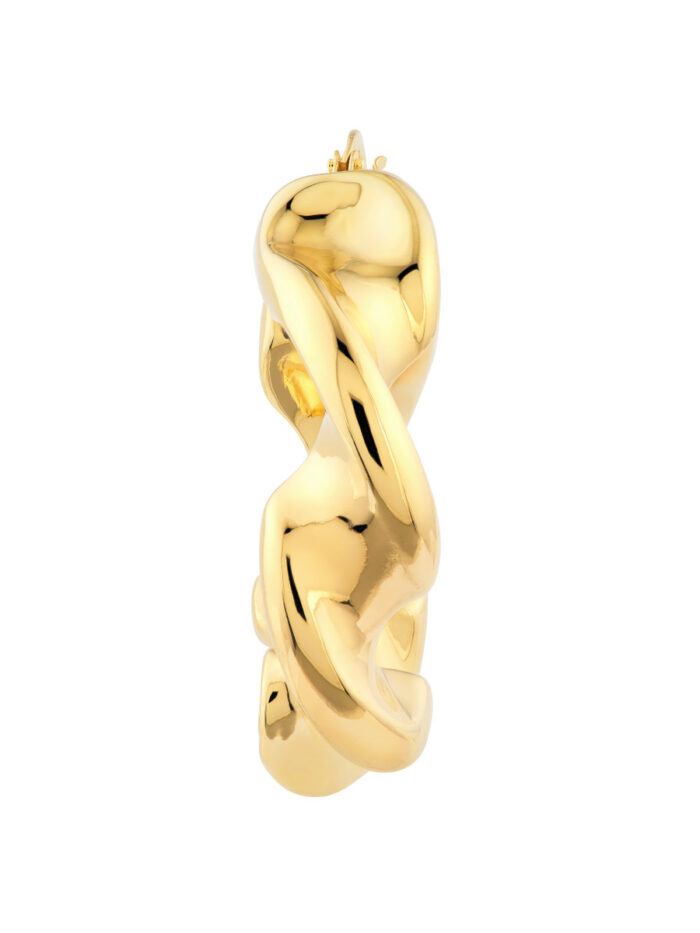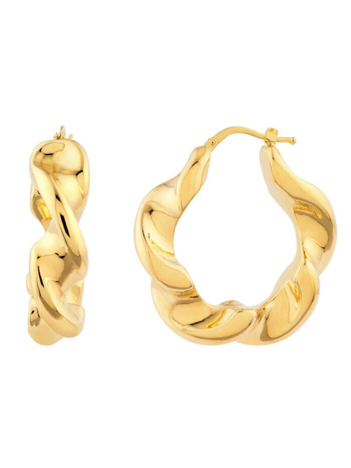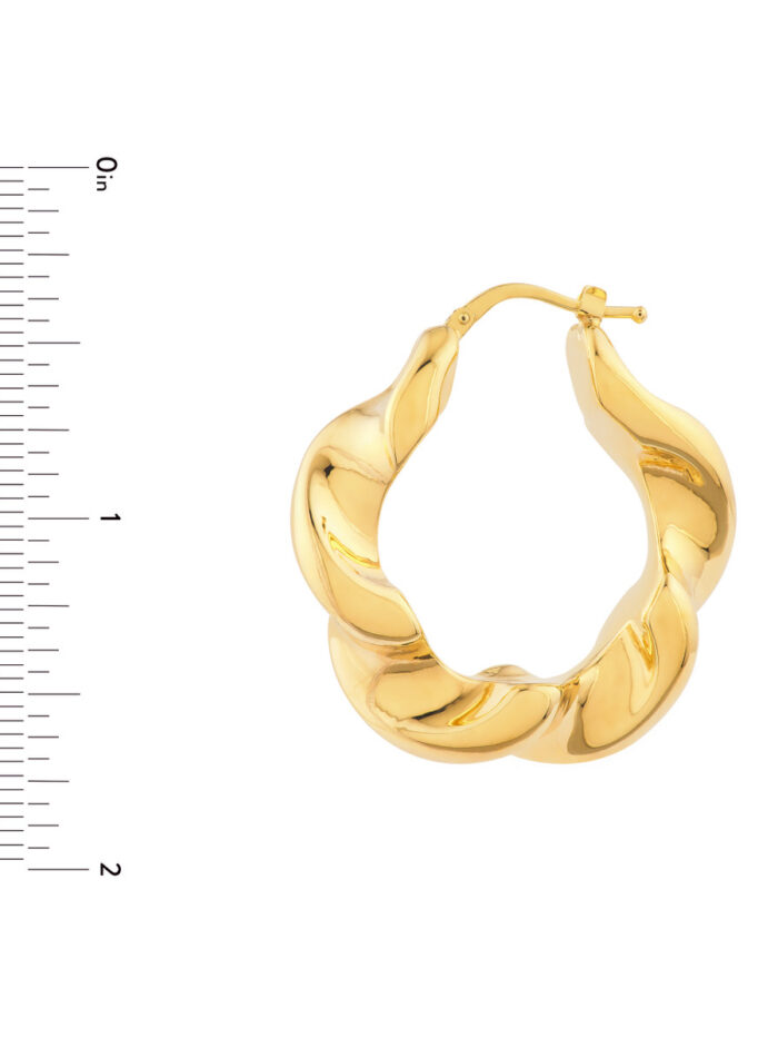 Make a statement with these eye-catching Wide Twist Puff Hoop Earrings. Crafted from high-quality 14K yellow gold, these hoops feature a unique twist design that adds a touch of modern sophistication to your style. The wide, puffy silhouette adds a bold and dramatic flair, while the secure hinge closure ensures comfortable wear.